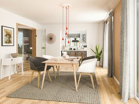 In der Küche spielt sich das gesellige Familienleben ab: Hier wird bei gutem Essen über die Erlebnisse des Tages und neue Pläne geplaudert. Im Grundriss entscheiden sich viele Bauherren für eine räumlich großzügige Küche, die nicht selten offen konzipiert ist. Somit erhöhen Sie den kommunikativen Charakter, wenn Sie als Gastgeber Besuch empfangen.