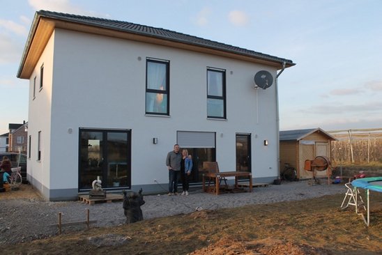Vor dem Hausbau hatte Nicole keine Bedenken, Andreas hingegen Angst, sich zu verschulden und den passenden Finanzierungspartner zu finden: „Technisch weiß ich, was eine Schraube ist, hatte also keine Bedenken. Aber ich hatte Angst, ob wir die finanzielle Belastung stemmen können.“ Das Leben ohne nahe Nachbarn gefällt der Familie. Nicole schätzt, sich das eigene Haus so gestalten zu können, wie sie möchte. Dies kostet vielleicht mehr, jedoch lohnt es sich dafür zu sparen.